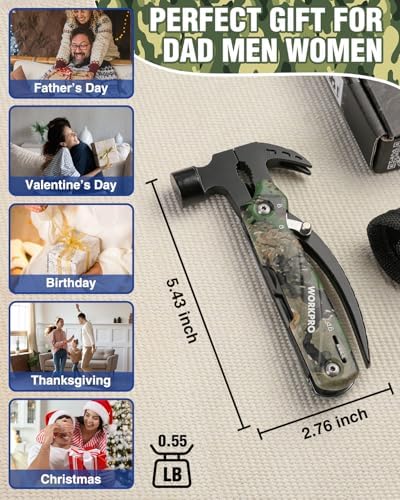 WORKPRO Multitool-12 in 1 Camping Tools with Mini Hammer-EDC Gear Multi Tools Hammer with Safety Lock and Pouch-Mini Multitools Gifts for Men and Women-Camouflage